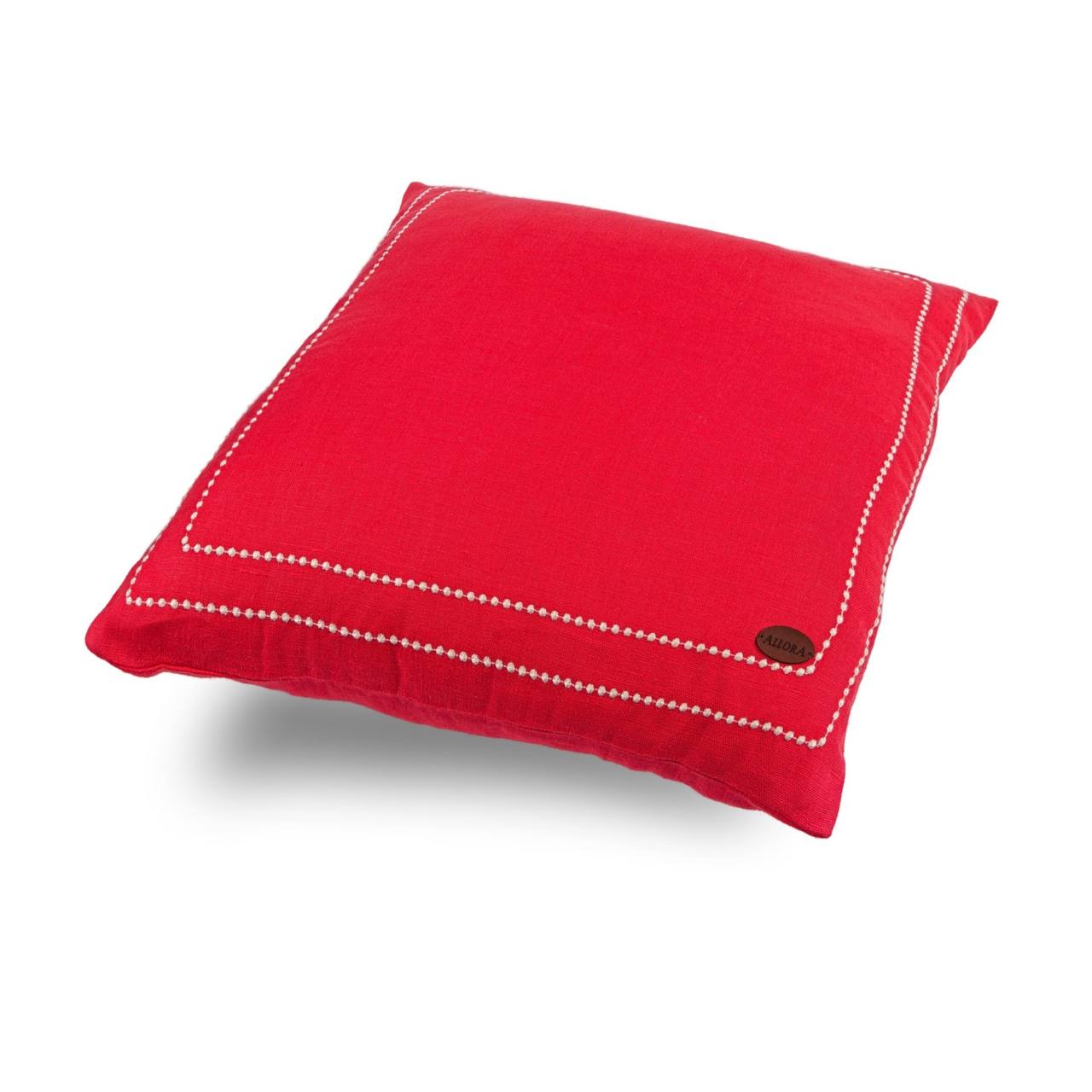 1. Nakışlı Kırmızı Kare Kırlent Kılıfı
