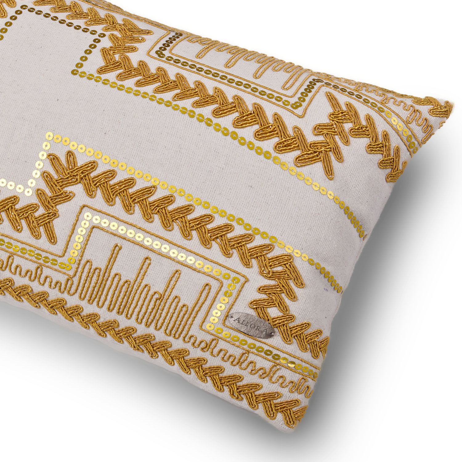 Keten kumaş üzeri mat pul nakışlı kırlent kılıfı. Kuru temizlemeye uygundur. Gizli fermuarlıdır. İç yastığı ayrı satılmaktadır.