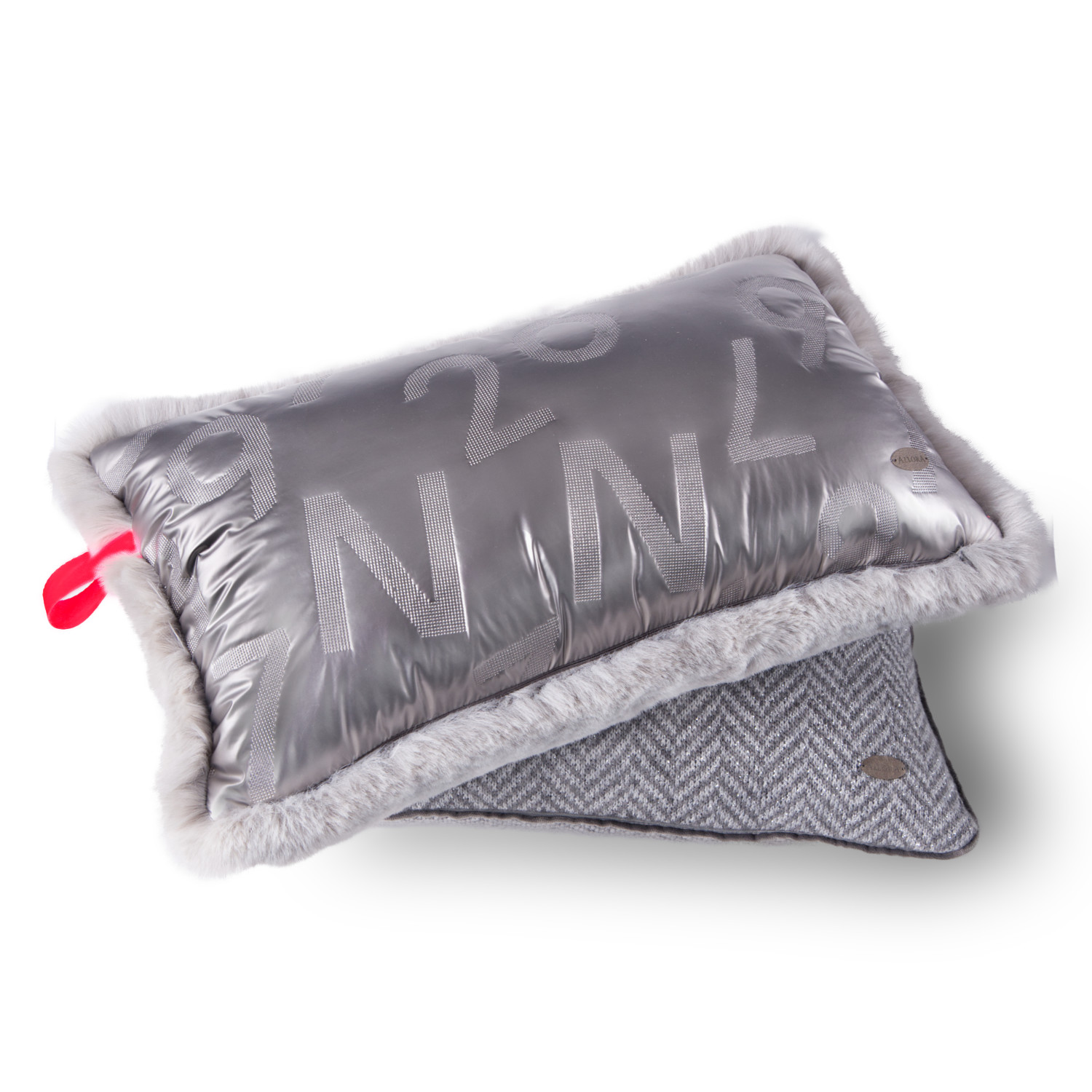 Ön yüzü imitasyon tüylü arka yüzü şişme kumaştan dikdörtgen kırlent kılıfı
