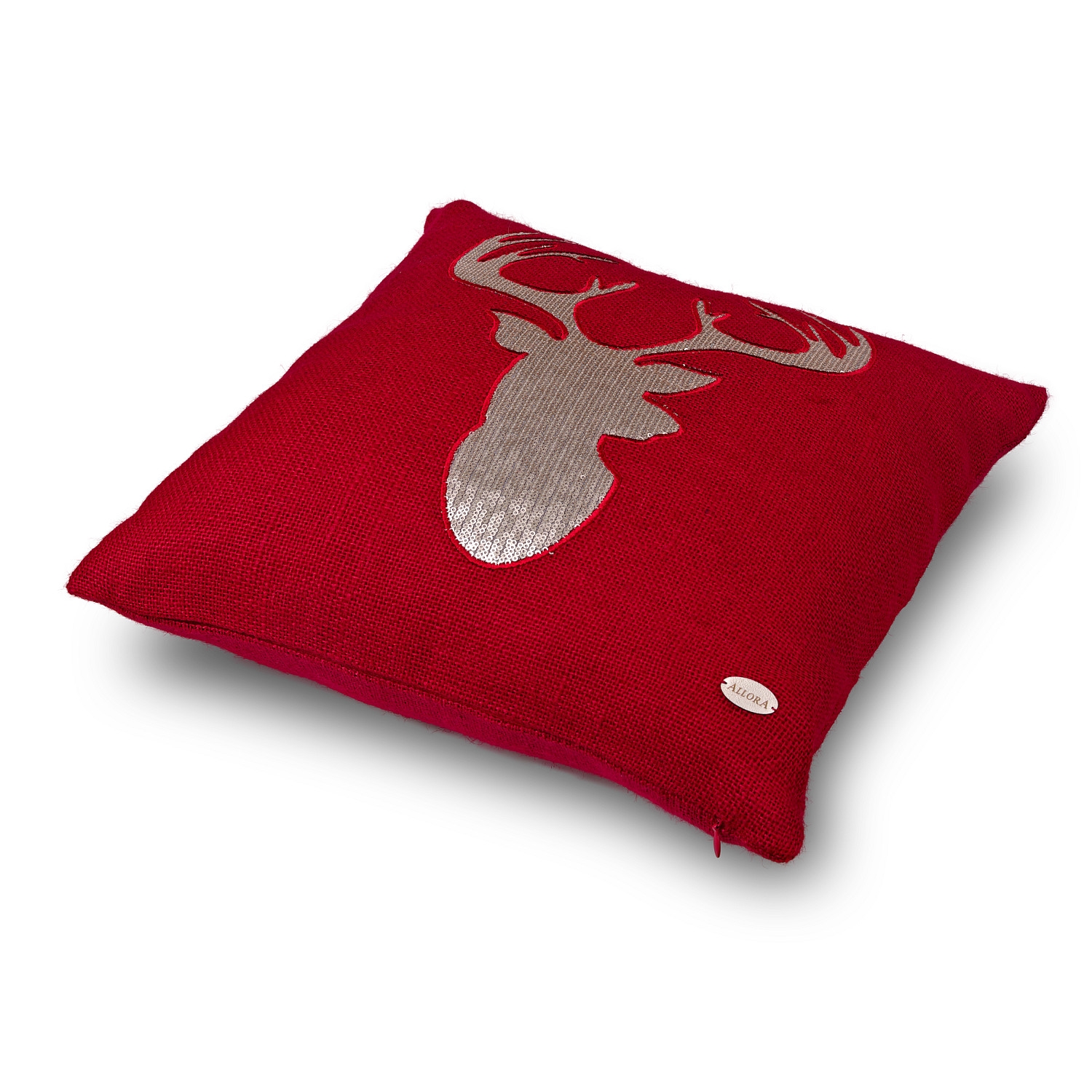 Yılbaşı temalı pullu "Geyik" motifli aplike nakışlı kare kırlent kılıfı